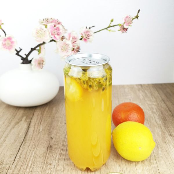 500ml Food Grade Clear Plastic PET Containers With Can Lids Milk Beverages Images |